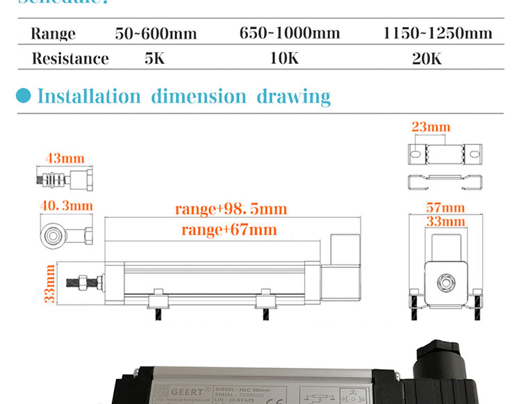 DHL waterproof linear displacement sensor