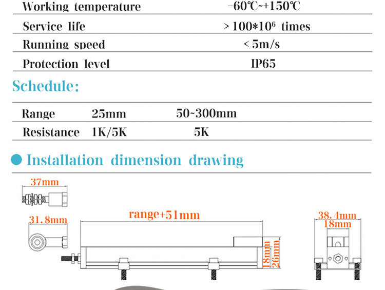 DHL waterproof linear displacement sensor