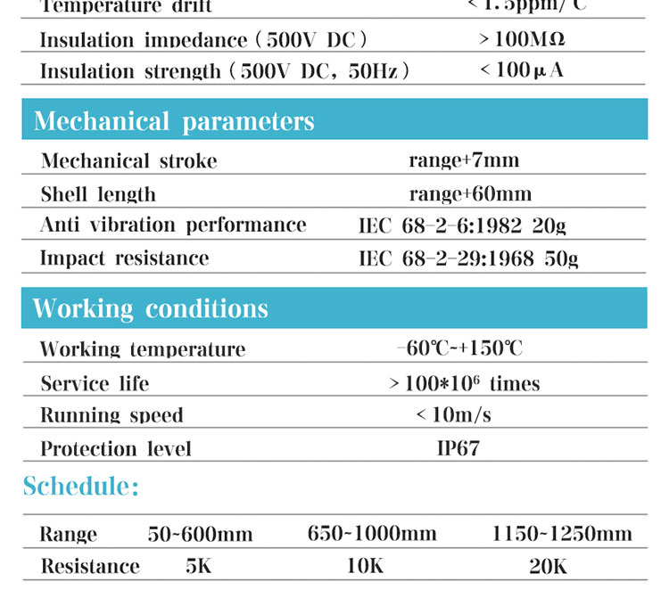 | Brief introduction:The linear displacement sensor based on potentiometer principle is a linear displacement sensor with sliding rheostat structure. The sensor can supply 5V or 10V power, output 0-5V, 0-10V voltage signal, or 12-24V power supply. It is equipped with transmission module to output 0-5V, 0-10V, 4-20mA analog signal, which is convenient to connect with PLC control system for processing and calculation.